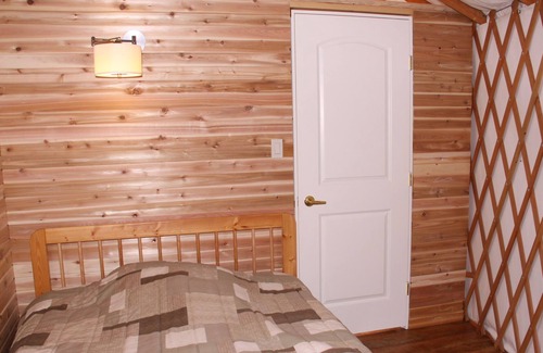 Fully furnished with separate bedroom, full kitchen and bathroom and a cozy wood stove provides the yurt all the amenities of a traditional house.