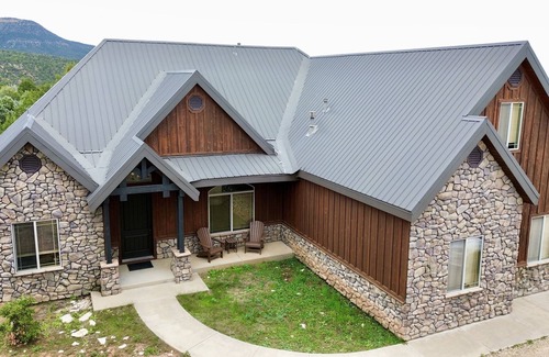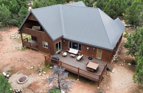 This home is privately owned and located in Zion Ponderosa gated community known as Zion Ridge. With 5 bed/4 bath, large dining area, and spacious open family/dining room, as well as entertainment room upstairs, you can't go wrong for couples/families who want their own bed/bath and amenities, or large groups and family gatherings. Access and use of Zion Ponderosa facilities available for an additional resort fee. Zion Ponderosa Resort located less than a mile from the cabin. ZP Amenities include swimming pool, jacuzzi, miniature golfing, ziplines, rock climbing wall, ATV tours etc. Cabin is also located close to Zion National Park, Bryce National Park, Brian Head Ski Resort, Coral Pink Sand Dunes, ATV trails and much more. This home sits on 1.25 acres of private property surrounding by pine trees and fresh mountain air. Snow removal and year-round access available.