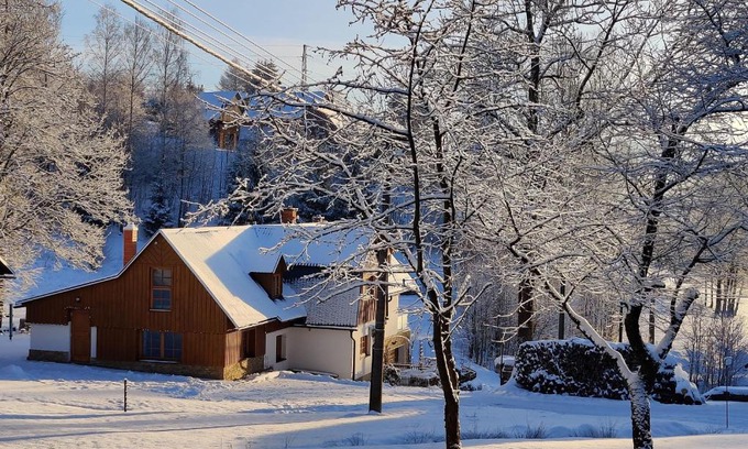 Housed in a historic building, the recently renovated Luxusní apt Hory 7 v Krkonoších features accommodations with ski-to-door access and free Wifi. This property offers a pool with a view and free private parking. On clear days, guests can head outside to enjoy the apartment's outdoor fireplace or simply kick back and relax. The apartment consists of 1 bedroom, a living room, a fully equipped kitchen with a dishwasher and a coffee machine, and 1 bathroom with a shower and a hair dryer. A private entrance leads guests into the apartment, where they can enjoy some wine or champagne and chocolates or cookies. There's also a seating area and a fireplace. For guests with children, the apartment provides outdoor play equipment. If you like to discover the area, skiing, cycling and hiking are possible in the surroundings and Luxusní apt Hory 7 v Krkonoších can arrange a bicycle rental service. Szklarki Waterfall is 17 miles from the accommodation, while Kamienczyka Waterfall is 17 miles from the property. Pardubice Airport is 65 miles away.