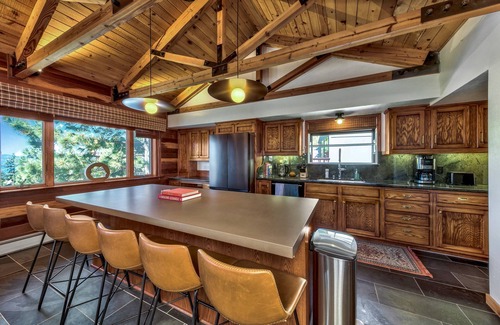 Lakeview Estate is above it all! Welcome to this stunning luxury home located in the highly sought-after Cave Rock community in Glenbrook, Nevada. Recently remodeled, this home boasts over 4,000 square feet of modern elegance and comfort, providing a luxurious retreat for any guest. As you step inside, you'll immediately be struck by the attention to detail and quality craftsmanship throughout the home. The newly remodeled bathrooms feature top-of-the-line finishes and fixtures, creating a spa-like experience for residents and guests alike. The wall-to-wall slate flooring upstairs provides a sleek and stylish look, while the fresh oak vinyl flooring throughout adds warmth and sophistication to every room. With breathtaking lake views from multiple rooms and a deck, this home truly embodies the Tahoe lifestyle! Permit #DSTR1171P