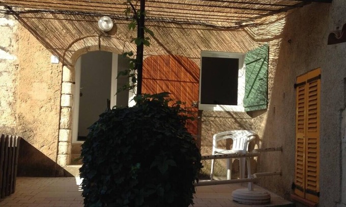 The Forge: terraced house in the heart of a typical village of Provence, terrace with pergola, Garden, beautiful view. Ideal for discovering the varois hinterland: Ste believe Lake (15km), the gorges du Verdon (25 km), Cotignac and its Troglodyte caves, the village of Aups var of black truffle capital... Ground floor (8 steps): living-kitchen-living room, TV. First floor: a bedroom with two single beds (90cm) communicating with a bedroom with a double bed, a bed folding single, shower room, wc. Electric heating.