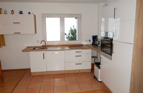 "Mühlenmichelshäusle", 2-room apartment 60 m2 on 1st floor. Object suitable for 2 adults + 2 children. Simple and cosy furnishings: living/dining room with satellite TV, radio and CD-player. 1 room, ceiling height 190 cm with 1 double sofabed and 1 double bed. Open kitchen (4 hot plates, oven, dishwasher, toaster, kettle, microwave, freezer, electric coffee machine). Shower/WC. Heating. Terrace. Terrace furniture, barbecue, deck chairs. Facilities: children's high chair, baby cot. Internet (WiFi, free). Please note: suitable for families. Non-smokers only. Smoke alarm.