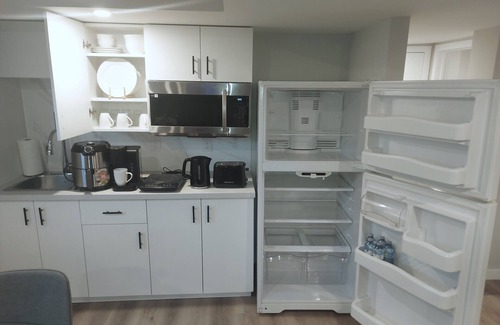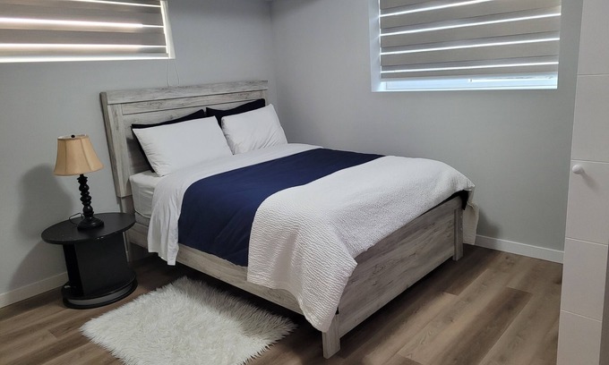 This private basement suite (no shared space) is ideal for a single person, couples, or a small family. The recreation room comes with a 60" smart TV with WIFI capability for your favourite streaming services.