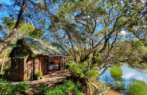 PERFECT HONEYMOON DESTINATION! Hidden from view this studio cottage features a romantic outdoor claw foot bath on the deck overlooking the river; stunning views across the water; an absolute waterfront location; complete seclusion; a super king bed and luxurious bed linen; fresh flowers, magazines and books; kayaks, canoes and fishing; private boathouse and jetty, secluded swimming spots, glow worms and 150 acres of pristine native bush, pasture and river front to explore.