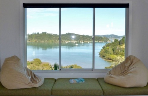 Modern, spacious and well appointed home with views to die for. Two double bedrooms, each with wonderful water views to wake up to. This home is perfect for couples looking for a getaway. Close to historic Russell and all it's charms, yet private and spacious enough so you can relax and unwind. Listen to nearby kiwi in the bush at night, you have seclusion and quiet all around.