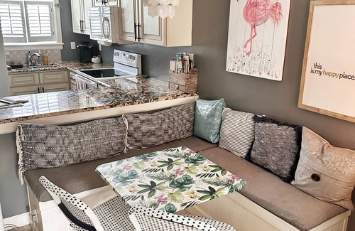 Recently updated beach cottage! Available downstairs space is very comfortable with a relaxed island breezy appeal. King and queen bedrooms with additional quality blow up queen mattress. Living space is open with French doors leading to the back deck. Great for relaxing after a day at the beach, downtown or shopping as this place is close to it all. Spacious kitchen with dining for 6 plus a small breakfast nook. Gorgeous private courtyard with string lights for night time dining in a magical setting.