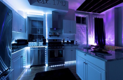 Kitchen: Fully equipped with modern appliances and old-world charm. It is perfect for candlelit dinners. Modern dining with a skyline mural will bring magic to the table. Enjoy tons of provided games, such as Jumbo Jenga, Dice, and Connect Four. This is the place for laughter, excitement, and memories.