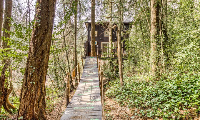 This one-of-a-kind stay is private enough to feel worlds away, while still being 10 minutes from downtown Portland. Surrounded by several acres of old-growth forest, you’ll wake to the tranquil sounds of birds chirping. Kick off adventures by zip-lining from your treehouse to the woods below!
