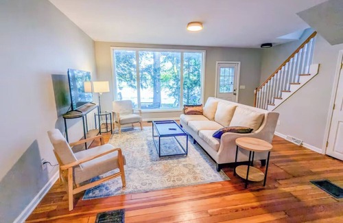 You are steps from your own private access to Upper Scott Lake. Swimming, paddle-boarding, and campfire s'mores await during the sunny summer afternoons. Autumn colors, cozy evenings by the fire, and family movie night fill cooler, rainy days. Grab a chair and relax under the well-shaded lot.
