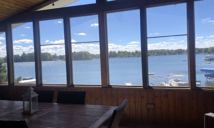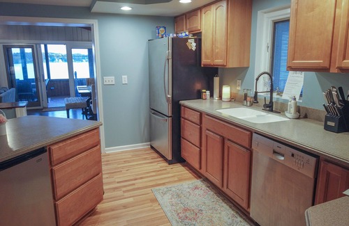 This newly renovated 4 bedroom, 2 bath home is the perfect place for family and friends to gather and relax for an unforgettable vacation. Inside the house enjoy the cozy living room, dining table, fully equipped kitchen and game room. Take in the views on the amazing screened-in porch. Outside you can take advantage of everything the lake has to offer with a private dock, swimming area, spacious back yard, and gas grill. Cap off the night star gazing by the fire pit. You also won't want to miss the bonus walk out bar equipped with a large screen TV, ice maker, and refrigerator. Included in your stay is the use of our many water toys. You will find swim noodles, toys, and rafts. We also have a kayak, 2 person canoe, stand up paddle board, and 2 youth kayaks on site. A variety of life vest sizes are stocked for your convenience. Don't forget your fishing poles! Our corner of the lake is known for a good catch.