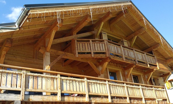 Wooden chalet of recent construction 2011, ideal for a ski holiday in family, quiet, overlooking the village of St Sorlin and the Aiguilles d'Arves. The ski area is located in the heart of the Sybelles massif.