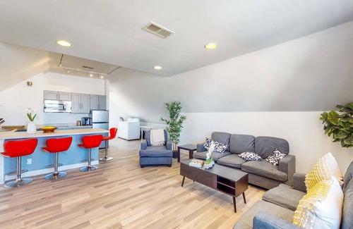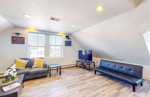 Boasting brand-new renovations and pristine living quarters, this lovely apartment will truly fulfill all your needs and then some. The huge third-level loft homes a well-equipped kitchen, a private washer/dryer, a full bathroom, and a light-filled living room with views of downtown Boston in the distance. Sit and unwind here while tuning into a movie on the large TV. Or, cook amongst the stainless steel appliances and ample meal prep space in the kitchen.