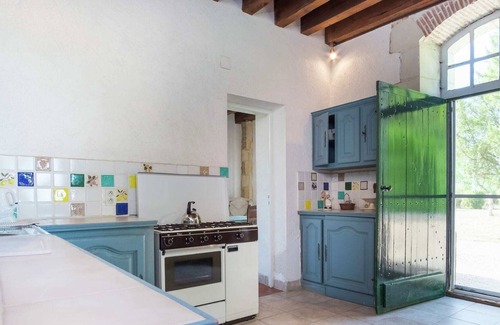This holiday home is a spacious 3-bedroom castle located in the countryside with a capacity of 6 guests. It has a private garden and a swimming pool, to be shared with other guests.