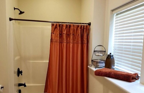 The newly renovated bathrooms feature first-class modern fixtures with tasteful tile work. Master bath also offers a jacuzzi tub for an extra romantic evening. Essential toiletry items, cotton bath towels available for your convenience. Guests are welcome to use the washer and dryer during the entirety of their stay. Please be sure to bring your own supplies.