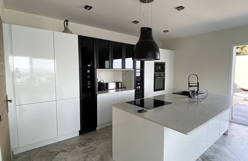 The villa can comfortably accommodate 12 people, featuring a large living/dining room with a magnificent open-plan kitchen, all opening onto large terraces with a swimming pool.