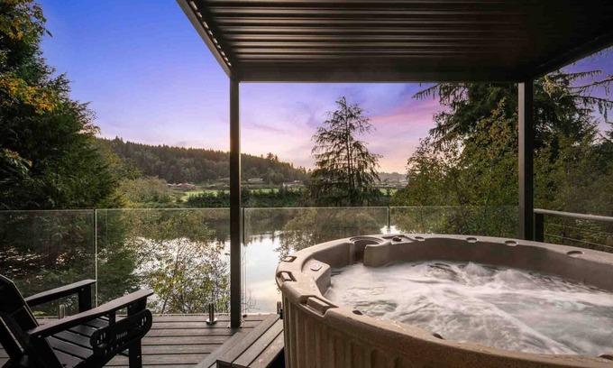 The outdoor space is equally impressive. The expansive deck features ambient lighting and comfortable seating, perfect for all day relaxation, and a private hot tub where you can soak in the peaceful sounds of nature. Whether you're sipping your morning coffee or unwinding with a glass of wine, the views of the river will never disappoint. For those who enjoy local wine, the Nehalem winery is just across the street, or you can take a short 5 minute drive to the stunning Manzanita beaches. To end the day, tuck in, stars in view, for restful night sleep on a pillowtop Dreamcloud mattress that will bring sweet dreams and rejuvenate you to start again the next day.