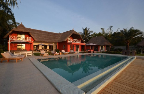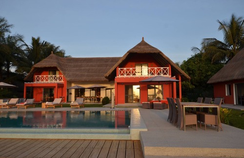 Magnificent Villa by the sea with private access to the beach and individual 5 * service, in a 5000m2 private domain, planted with lush vegetation, at Cape Skirring, in Casamance, 13m x 6m heated swimming pool, equipped terrace, all comfort for 8 people, 4 bedrooms with private bathroom and wc, large living rooms, fully equipped kitchen, mezzanine, office, house staff for maintenance, the table and your personalized comfort.