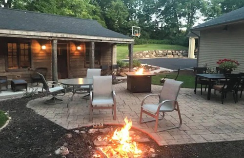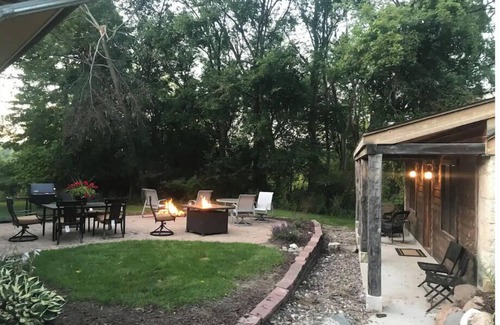 The backyard is quiet and private, with a unique atmosphere next to the historic “Bronyberllan” cottage. The back patio has a wood fire pit and a gas fire table. There is an excellent room for the kids to play games in the finished lower level. They will also love playing in the loft of the cottage. There is ample space for a large group and a kitchen to accommodate.