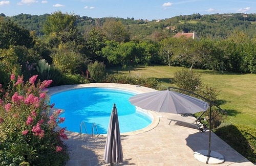 The house is south facing and all rooms have windows offering great views over the pool and garden - which are open to the sun most of the day - and countryside beyond.