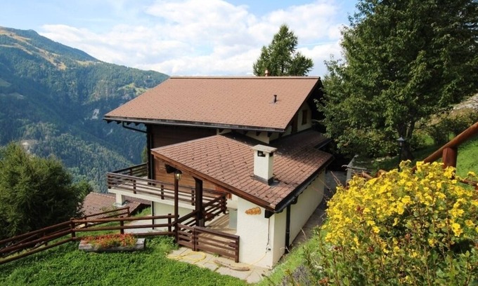 Magnifique chalet de 5 pièces pour 6 à 7 personnes sur 3 niveaux, situé à l'entrée du village offrant une vue splendide et panoramique, jardin et terrasse partiellement couverte avec mobilier de jardin et barbecue.Au rez: Hall d'entrée, WC et lavabo. Séjour chaleureux et lumineux orienté sud/sud-ouest avec poêle en pierre olaire, TV câblée, internet par wifi, coin à manger. Cuisine ouverte équipée d'un lave-vaisselle, micro-ondes, caquelon à fondue, raclonnette, mixer, grille-pain. Accès direct à la terrasse et jardin.Rez-inférieur: 2 chambres doubles (lits 160x200) avec accès direct au jardin et terrasse. 1 chambre avec 2 lits superposés. 2 salles de bain, une avec baignoire, WC et lavabo double et une avec cabine de douche, lavabo et WC. Local à ski et buanderie avec lave-linge, congélateur.A l'étage: 1 chambre à un lit simple.3 places de parc extérieures accessibles aisément en été par le sentier les Airelles, à 150 mètres de la route cantonale. En hiver, des chaînes à neiges ou un véhicules 4x4 sont nécessaires pour relier la route cantonale au chalet. L'arrêt du bus postal et du bus navette est à 5' à pied du chalet. -- -- Final Cleaning: Final cleaning is included in the rental price -- -- Available Kitchen Towels: Bed linen, bath and kitchen towels (if you wish) : Chf 45.00 per person -- -- Available Bath Towels: Bed linen, bath and kitchen towels (if you wish) : Chf 45.00 per person -- -- Bedsheets: -- Bed linen, bath and kitchen towels (if you wish) : Chf 45.00 per person -- -- Parking: as per description -- -- Caution: CHF 300.00 -- -- Cancellation Insurance: We recommend to subscribe a cancellation fee insurance -- -- Administrative Costs: Booking fees : Chf 50.00 -- -- Pets : as per description -- -- Tourist Tax: As per contract --