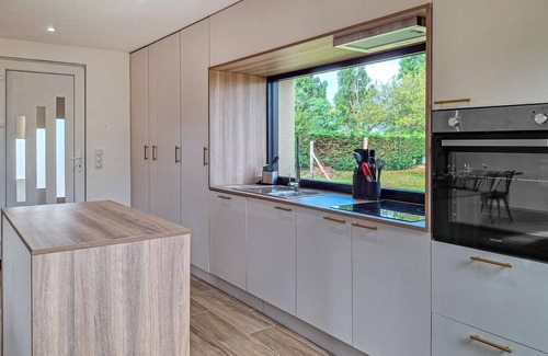 In the heart of a nature reserve and just a short walk from the beach, this modern and comfortable holiday home welcomes you. Make yourself comfortable in the tastefully furnished interior, conjure up culinary highlights together, look forward to convivial meals at the inviting dining table and throw old photos on the screen or immerse yourself in a good book in your favourite corner.