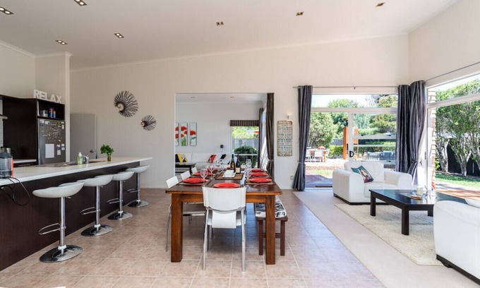 Best-rates for the Mangawhai Heads house starts from $248 per night with includes Child Friendly, Parking, View, Security/Safety, Entertainment, Internet, Kitchen, Laundry, Air Conditioner, Ocean View, Balcony/Terrace, Oceanfront, Fireplace/Heating StayAndPlay offers fully equipped golf villas, golf hotels, golf resorts, luxury golf cabins, and exclusive golf retreats, making it easier than ever to find your perfect golf escape — ideal for families, peaceful getaways, or pet-friendly retreats with the whole crew.
