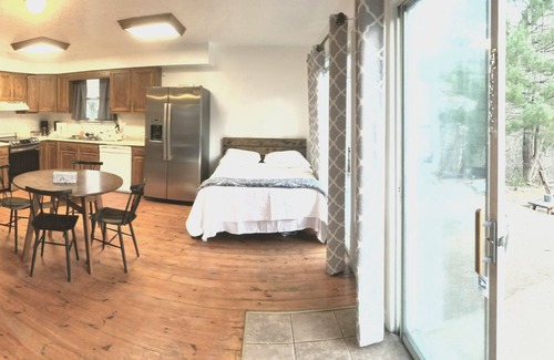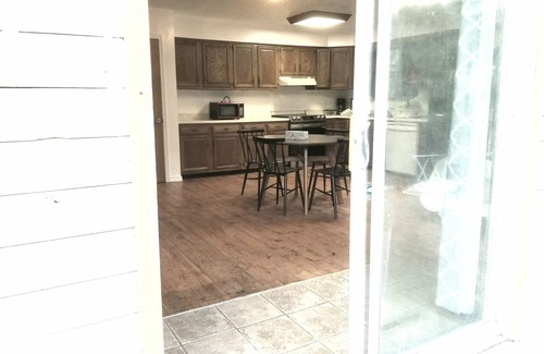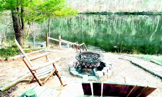 This is the Deluxe one bedroom River unit # 4 in a 4 unit house called the Magnolia House. You can rent all 4 private studio rooms or one of the 2 RVs on the property for multiple families if available. Many rent this large one bedroom unit along with unit #3. A securely locked metal door separates. This one bedroom deluxe unit sleeps 9 comfortably. There are 2 queen beds in the Master, 1 full bed I'm the living area, and 3 twin folding beds that can be set up anywhere. This unit overlooks the majestic White River. This location is a popular location for professional anglers because of its unique location. A private creek runs into the White River making a perfect point for large Brown, Brook, and Rainbow trout. Also, this house sits between the famous White River State Park and Gastons. This property is under new ownership and boasts of a clean, well managed stay. Smart locks and security cameras are used for safety and easy no contact check in and out. A full kitchen and large living area make this a perfect home for families to unwind. Also, a security fence has been installed for the safety and security of children(newly installed). The new fence lines the edge of the side creek and the top part of the White River Bank. A fireplace and grill on the back porch area provides an amazing outdoor space for the family as well. Each unit in this home has all the essential kitchen, bath, and bedroom items. Come and vacation in paradise and catch that record trout