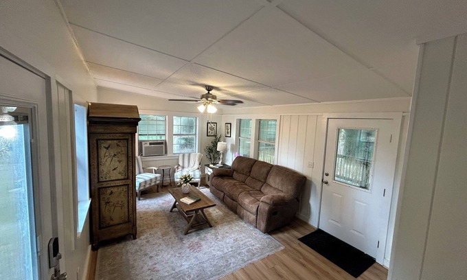 Get ready to relax in this 2-bedroom cabin in Lucedale. This welcoming retreat offers a cozy atmosphere perfect for unwinding after a day of exploring. With amenities like heating, a washing machine, and AC, guests can feel right at home. The marvelous surroundings and enchanting ambiance make this cabin a delightful escape. A great place to call homebase while you're away, we hope you enjoy your stay.