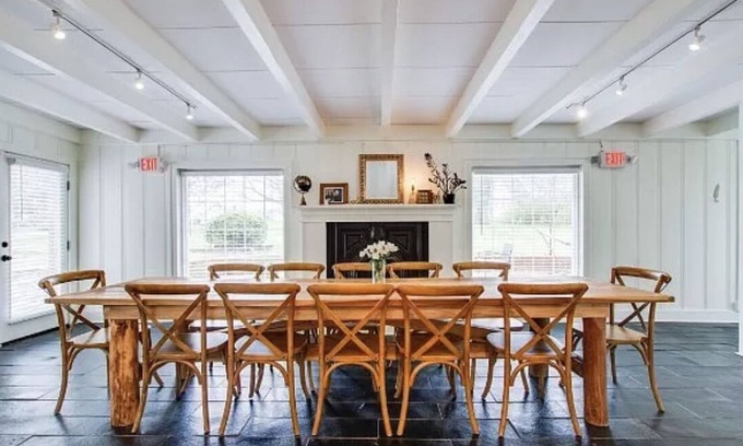 The dining area holds a large wonderfully rustic table that comfortably seats12.