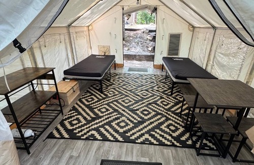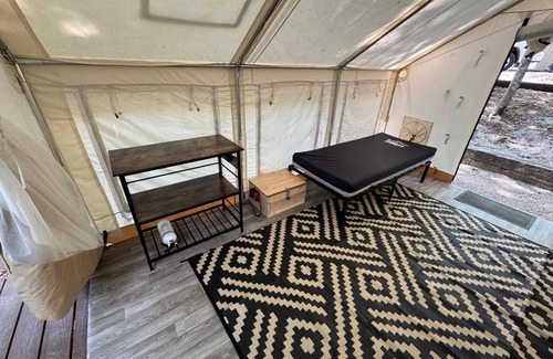 Experience the beauty of Red River Gorge with the comfort of glamping at Magnolia's Rest. This thoughtfully designed canvas wall tent combines rustic charm with modern conveniences, offering the perfect balance of nature and relaxation.