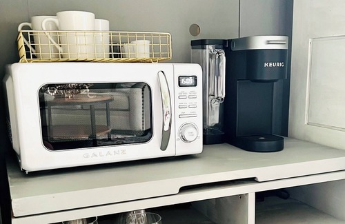 Step into the light and bright Magnolia Suite and you'll feel that instant relaxed feeling. The room has a large comfy sectional sofa that will make you want to curl up and read a book or watch your favorite Netflix shows on the 50" Smart TV. The space is newly renovated and features a King size bed with fresh soft linens and fluffy pillows. There is a table that can be used for dining or as a desk for working remotely. High Speed internet will keep you online if you must work while visiting. The spa-like bathroom is completely new with an oversized glass and tile shower, pedestal sink and oversized towels. Shower products and a blow dryer are provided. The floor to ceiling windows provide a view a lush wooded area at the back of the home where the Suite is located. A ramp to the private deck equipped with seating and a gas bbq grill is a bonus. We provide coffee pods, creamer, sugar, tea bags, coffee cups, wine glasses, wine & bottle opener, disposable dishes and cutlery, ice, beach towels, noise machine for sleeping & a clothing steamer.