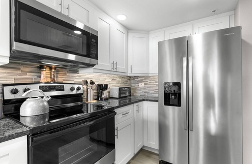 The kitchen is stocked with all your cooking and baking necessities, dishes, silverware, glasses etc. We provide a Coffee Maker, Toaster and Microwave are in your condo as well.
