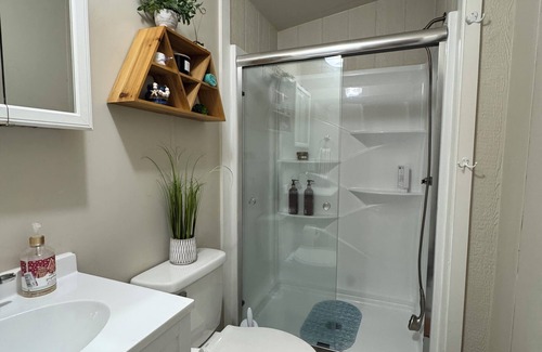 Consider this cottage your home away from home while you visit Hot Springs. Take in the boats headed up to check out Blakley Dam. This adorable retreat features 1 brilliant bedroom with a luxurious king bed, perfect for a relaxing night's sleep. The bathroom is equipped with a walk in shower with instant hot water and a hair dryer for your convenience. With amenities like 2 smart Roku tvs year round fireplace adjust heat and color. Work space, charcoal grill, Ac, heat, ceiling fan, and an iron, unwind on your own porch with rocking chairs and party lights, your stay will be awesome. Feel free to reach out to us during your stay - we're happy to suggest local spots to check out.
