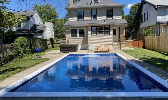 Main Street Oasis - Pool & Hot Tub Sleeps 8 is located in Hamilton. Main Street Oasis - Pool & Hot Tub Sleeps 8 provides accommodation, featuring Air Conditioner, Spa, Child Friendly, among other amenities. This House features Air Conditioner, Spa, Child Friendly, to make your stay a comfortable one.