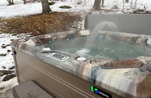 Outdoor Oasis- Relax in the luxurious saltwater outdoor hot tub, surrounded by the beauty of nature.