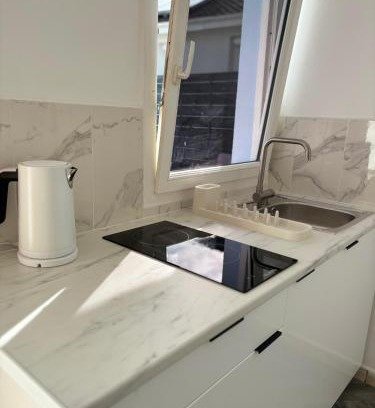 A recently renovated vacation home, Maison à Mantes la jolie offers accommodations in Mantes-la-Jolie. With garden views, this accommodation provides a terrace. Guests can use a garden. With free Wifi, this 2-bedroom vacation home features a TV, a washing machine, and a fully equipped kitchen with a microwave and stovetop. Towels and bed linen are available in the vacation home. The property has an outdoor dining area. Saint-Germain Golf Course is 24 miles from the vacation home, while Le CADRAN is 29 miles from the property. Paris - Orly Airport is 46 miles away.