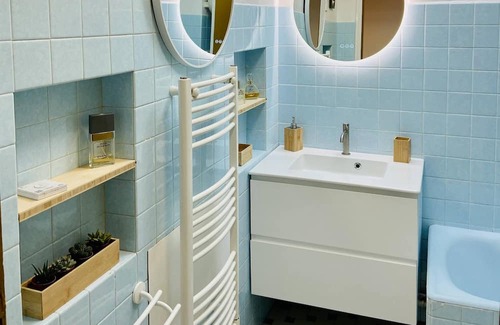 La salle de bain est équipée d'une baignoire et d'une douche italienne. Les WC à l'étage sont séparés.