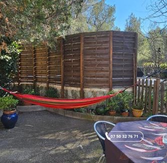 Maison Allauch La Forge offers accommodations in Allauch, 8.7 miles from Castellane Metro Station and 8.7 miles from Marseille Saint-Charles Train Station. With free private parking, the property is 7.9 miles from La Timone Metro Station and 8.6 miles from Vieux Port Metro Station. Les Terrasses du Port Shopping Center is 9.2 miles away and Marseille Chanot Exhibition and Convention Center is 9.3 miles from the apartment. Featuring a terrace and garden views, the spacious apartment includes 1 bedroom, a living room, flat-screen TV, an equipped kitchen, and 1 bathroom with a shower. Towels and bed linen are offered in the apartment. The property has an outdoor dining area. Saint-Ferreol Street is 9 miles from the apartment, while Joliette Metro Station is 9.1 miles from the property. Marseille Provence Airport is 19 miles away.