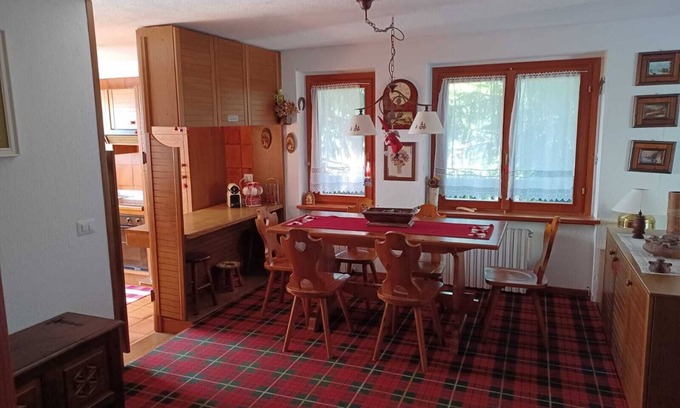 L'appartamento si trova in zona facilmente raggiungibile sia dal centro del Paese che dagli Impianti di risalita. Offre un parcheggio privato coperto, accesso diretto all'appartamento con ascensore, appartamento luminoso e curato nei dettagli include un balcone con vista meravigliosa sulle catene montuose.