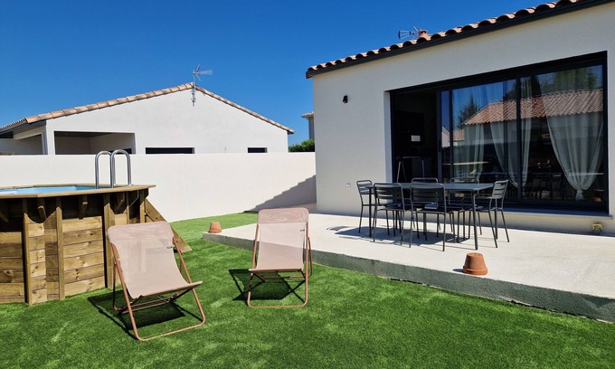 Maison Climatisée Avec Piscine, à 400 m du Canal du Midi. Mer à 30 Minutes | House in Sallèles-d'Aude