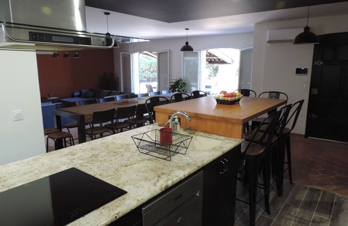 A living room, a dining area, a BBQ grill, and air conditioning are featured at this 8-bedroom, 5-bathroom rental. Bathroom amenities include a hair dryer and toilet paper. The kitchen is equipped with an oven, a stovetop, and a refrigerator, as well as a coffee maker, an electric kettle, and an ice maker. And you can even travel light because you'll have access to laundry facilities.