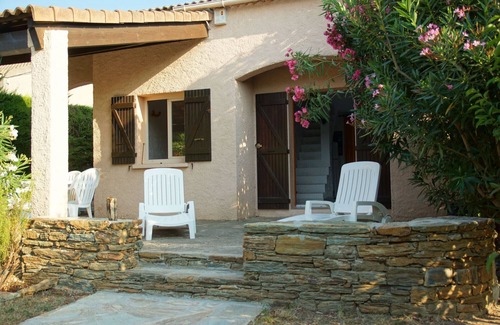 House for 6 people, located 4 km from Saint Florent and the sea, semi-detached on one side, with terrace, small garden, in a flowery environment, away from the main road.