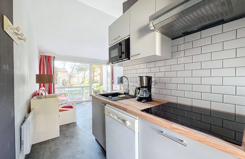 Located in Dolus-d'Oleron, this welcoming vacation home brings it all within your reach. Thanks to the convenient onsite parking, you can either leave your vehicle behind and enjoy a short 5-minute walk to Bay of Biscay, or easily tackle the quick 3-minute drive to Ileo.