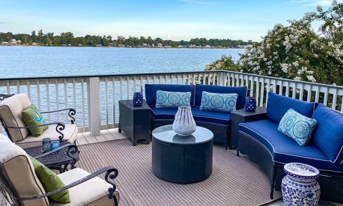 The home is located on the lake yet in the heart of town, close to shopping, stores, and restaurants.