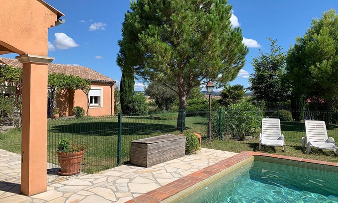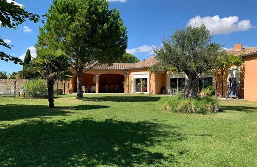 Enjoy a nice house in the foothills of Malepère, with its breathtaking view of 360 ° (Pyrénées, Black Mountain, plain of Lauragais, Malepère). You will appreciate its private and made safe swimming pool ( 45m2 with salt water treatment), covered terrace, trampoline, swing, hut, pétanque court, ping pong table, in the quiet of an enclosed garden of 3500m2 and features olive centenary.