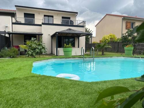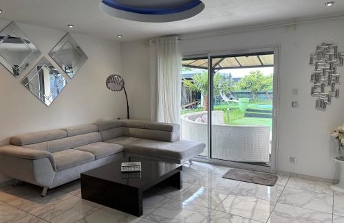 Providing a bar, Maison entière provides accommodations in Cébazat. This property offers access to a balcony, free private parking, and free Wifi. The villa features a picnic area and a 24-hour front desk. Featuring a terrace and mountain views, the villa includes 4 bedrooms, a living room, flat-screen TV, an equipped kitchen, and 2 bathrooms with a walk-in shower and a hot tub. Towels and bed linen are available in the villa. For added privacy, the accommodation has a private entrance and soundproofing. During warmer months, you can make use of the barbecue facilities and eat on the private patio. Guests can also relax in the garden, next to the outdoor swimming pool, or in the shared lounge area. Polydome Congress Centre is 3.9 miles from the villa, while Clermont-Ferrand Train Station is 4.5 miles from the property. Clermont-Ferrand Auvergne Airport is 6.2 miles away.
