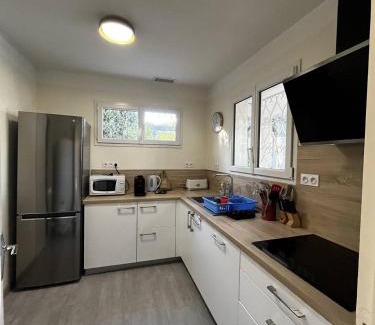 Maison T4 plain pied climatisée avec une belle terrasse ombragée 6AVR44 offers accommodations in Canet-en-Roussillon, a 5-minute walk from Roussillon Beach and 9.2 miles from Stade Gilbert Brutus. This property offers access to a terrace, free private parking, and free Wifi. Collioure Royal Castle is 19 miles from the villa. The air-conditioned villa consists of 3 bedrooms, a living room, a fully equipped kitchen with a dishwasher and a coffee machine, and 1 bathroom with a shower and a hair dryer. This villa also provides guests with a patio that doubles up as an outdoor dining area. For added privacy, the accommodation features a private entrance. Perpignan - Rivesaltes Airport is 14 miles away.