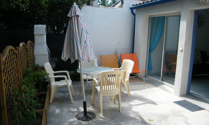 Maisonette 37 m2, 2rooms, in the garden near my villa with electric gate, between Lattes and Palavas, 5 minutes from the beach, parking, garden furniture, barbecue, TV, Wi-Fi, sofa bed in the lounge and 2 trundle beds in the bedroom, kitchen, washing machine, bathroom with tub.