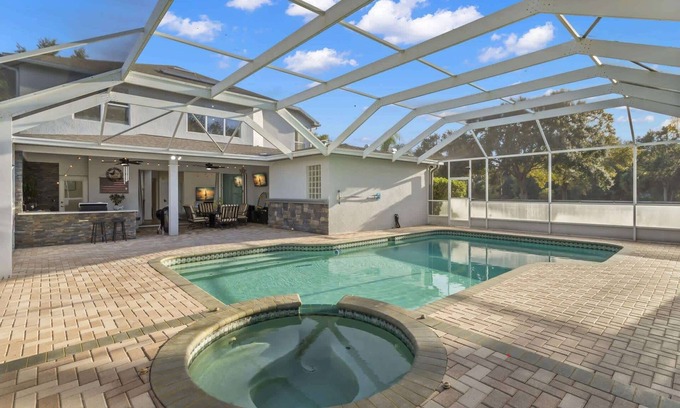 Best-rates for the Port Richey house starts from $551 per night with includes TV, Balcony/Terrace, Sports/Activities, Bedding/Linens, Fireplace/Heating, Barbecue/Outdoor Cooking, Child Friendly, Internet, Parking, Private Pool, Entertainment, Kitchen, Air Conditioner, Security/Safety, Laundry, Pool, Wellness Facilities StayAndPlay offers fully equipped golf villas, golf hotels, golf resorts, luxury golf cabins, and exclusive golf retreats, making it easier than ever to find your perfect golf escape — ideal for families, peaceful getaways, or pet-friendly retreats with the whole crew.