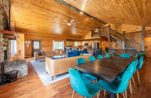This spacious cabin will comfortably fit your family needs to make your stay and experience an unforgettable one. Majestic Lodge has been furnished and decorated with a design forward focus to bring a contemporary feeling to this log home.